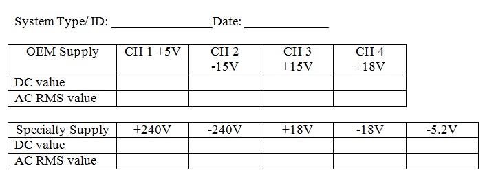 Card rack power supply Preventive Maintenance form
