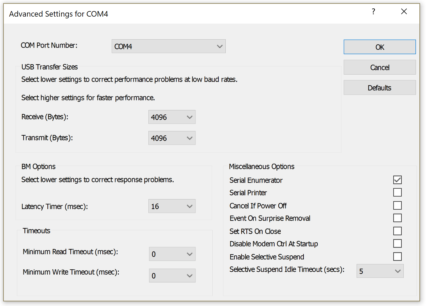 Of course, you’ll want to ensure you have the latest drivers installed. For FTDI, they can be found here: