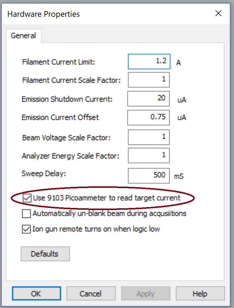 Now, whenever you take an acquisition (except for an alignment), the target current will be measured at the beginning of the acquisition and displayed with the other electron gun settings when the acquisition is complete.